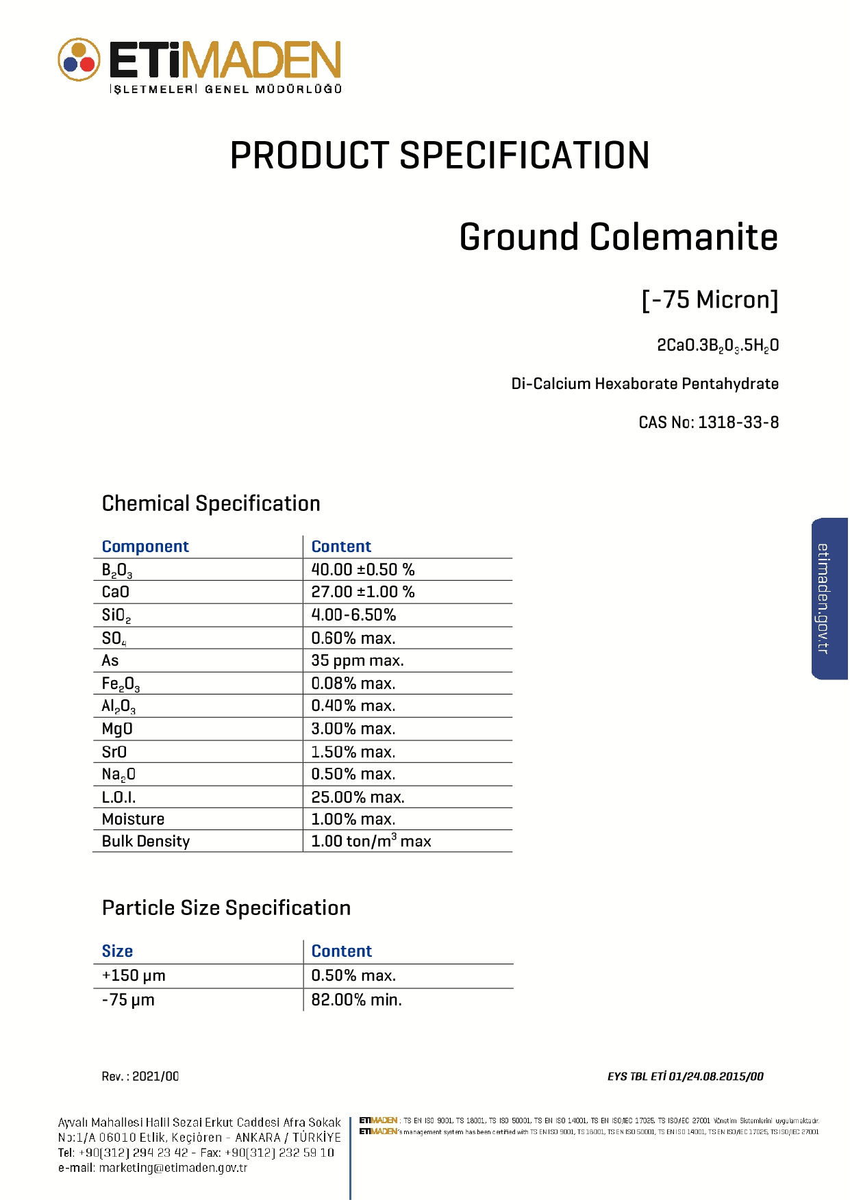 Ground Colemanite -75 Micron