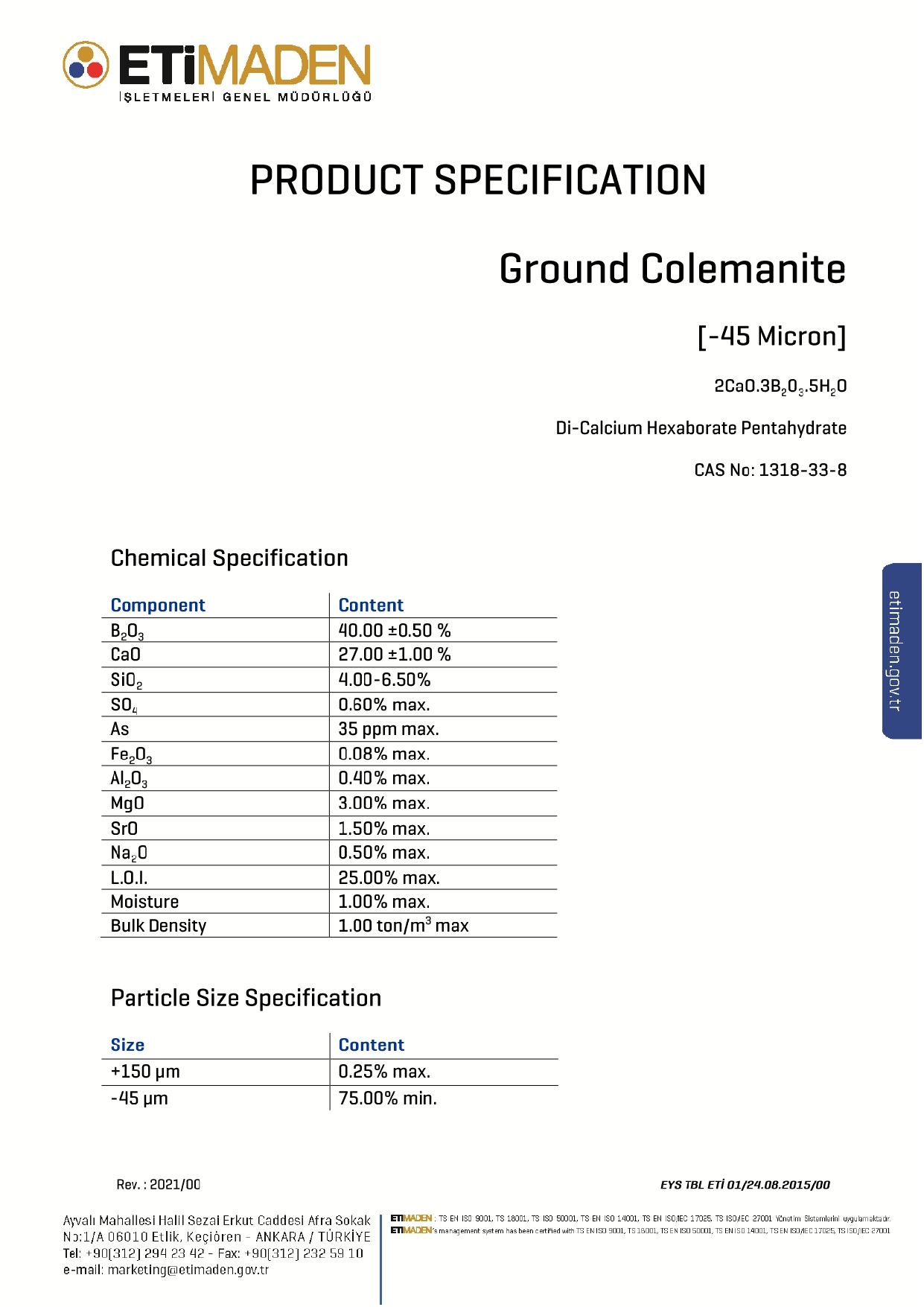 Ground Colemanite -45 Micron